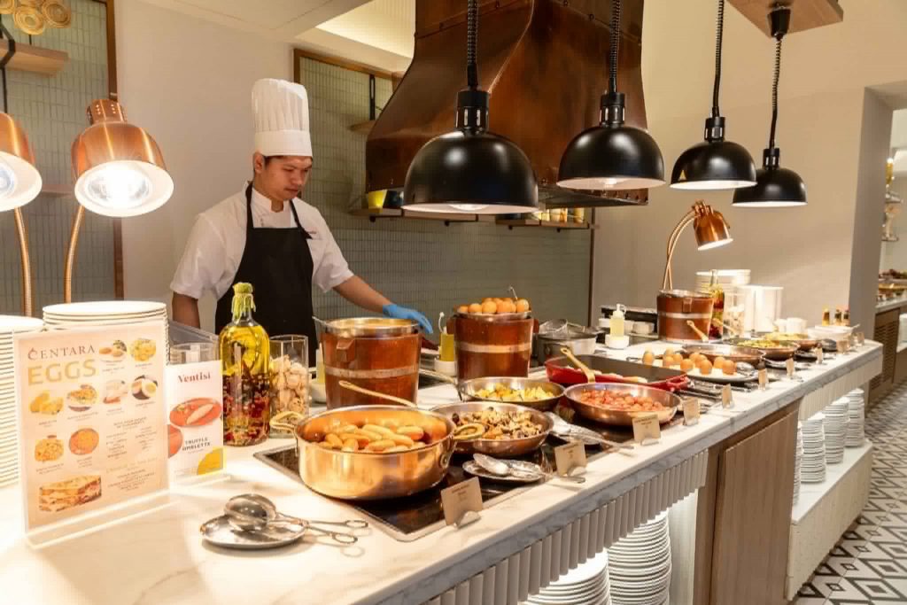 Ресторан Ventisi давно стал точкой притяжения не только для гостей отеля, но и для жителей города. Светлый, гостеприимный и наполненный ароматами свежей выпечки, он предлагает завтрак, в котором гармонично переплетаются две гастрономические культуры — тайская и итальянская. Формат щедрого шведского стола не отменяет внимания к деталям: яйца готовят по индивидуальному заказу, хлеб и выпечку подают только что из печи, а локальные тайские блюда соседствуют с легкими и полезными позициями для тех, кто предпочитает начинать день осознанно.