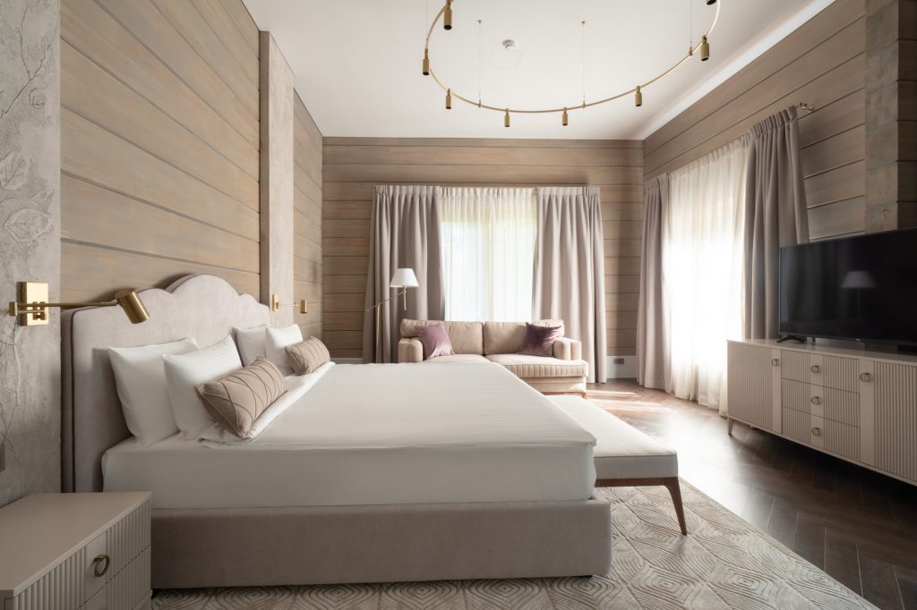Тем, кто ценит уединение и тишину, подойдут элегантные коттеджи, скрытые среди сосен. Для поклонников современного стиля и лаконичного комфорта прекрасным выбором станут утонченные номера в корпусе «Кристалл». А тем, кто хочет разделить драгоценные моменты с близкими в окружении природы и с исключительным комфортом, стоит обратить внимание на просторные премиальные виллы, среди которых особое место занимает подлинная жемчужина коллекции — вилла «Альсеида».