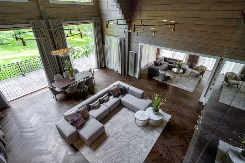 Панорамное остекление словно стирает границы между интерьером и внешним миром. Лес становится продолжением гостиной, а дневной свет главным декоратором пространства. С каждой террасы открывается кинематографичный вид: по утрам озеро окутано легкой дымкой, а к вечеру вода отражает золото заката и силуэты вековых елей.
