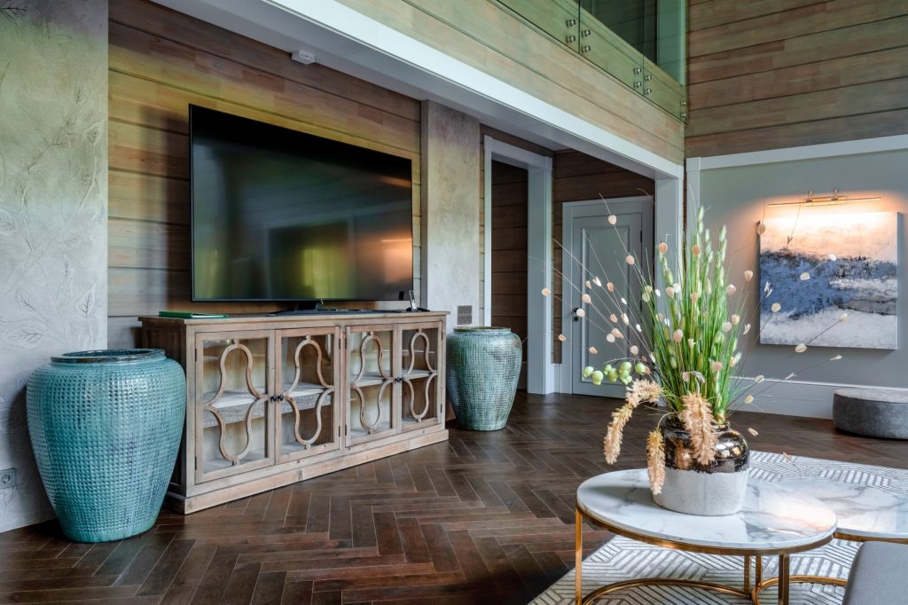 Цветовая палитра интерьеров построена на благородной сдержанности: оттенки бежевого, графит, светлый дуб, натуральный камень. Мягкая мебель с плавными линиями, мрамор, теплое дерево, латунные детали, качественный текстиль — каждый материал создает эстетику интерьера, наполняя его ощущением уюта и легкости, и дарит тактильное удовольствие.
