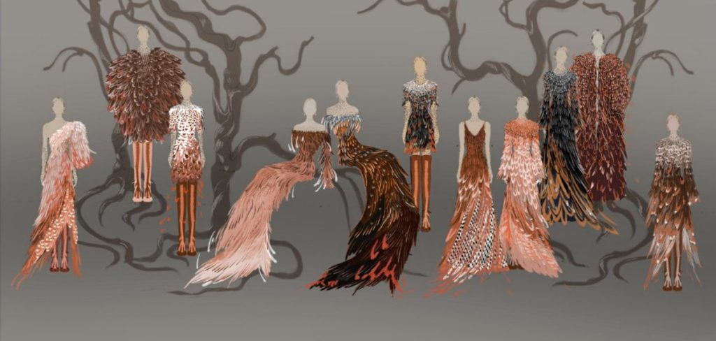 Особое место занимает платье «Божественная Майя» из собрания Государственного Эрмитажа, созданное дизайнером в 2015 году в память о великой Майе Плисецкой.