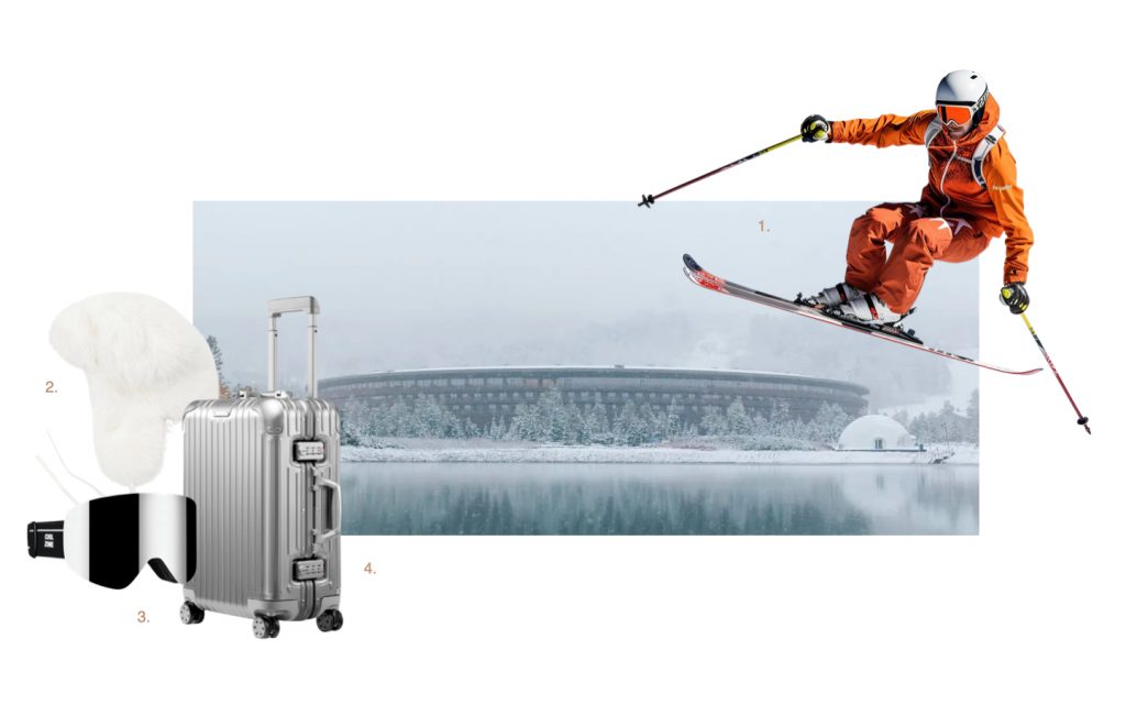 1. На курорте Манжерок вас ждет 50 км идеальных трасс для лыжников и сноубордистов. 2. Меховая шапка, Ekonika, Lamoda 3. Классическая горнолыжная магнитная маска для защиты глаз от солнца и ветра, Cool Zone 4. Чемодан, RIMOWA Original Cabin