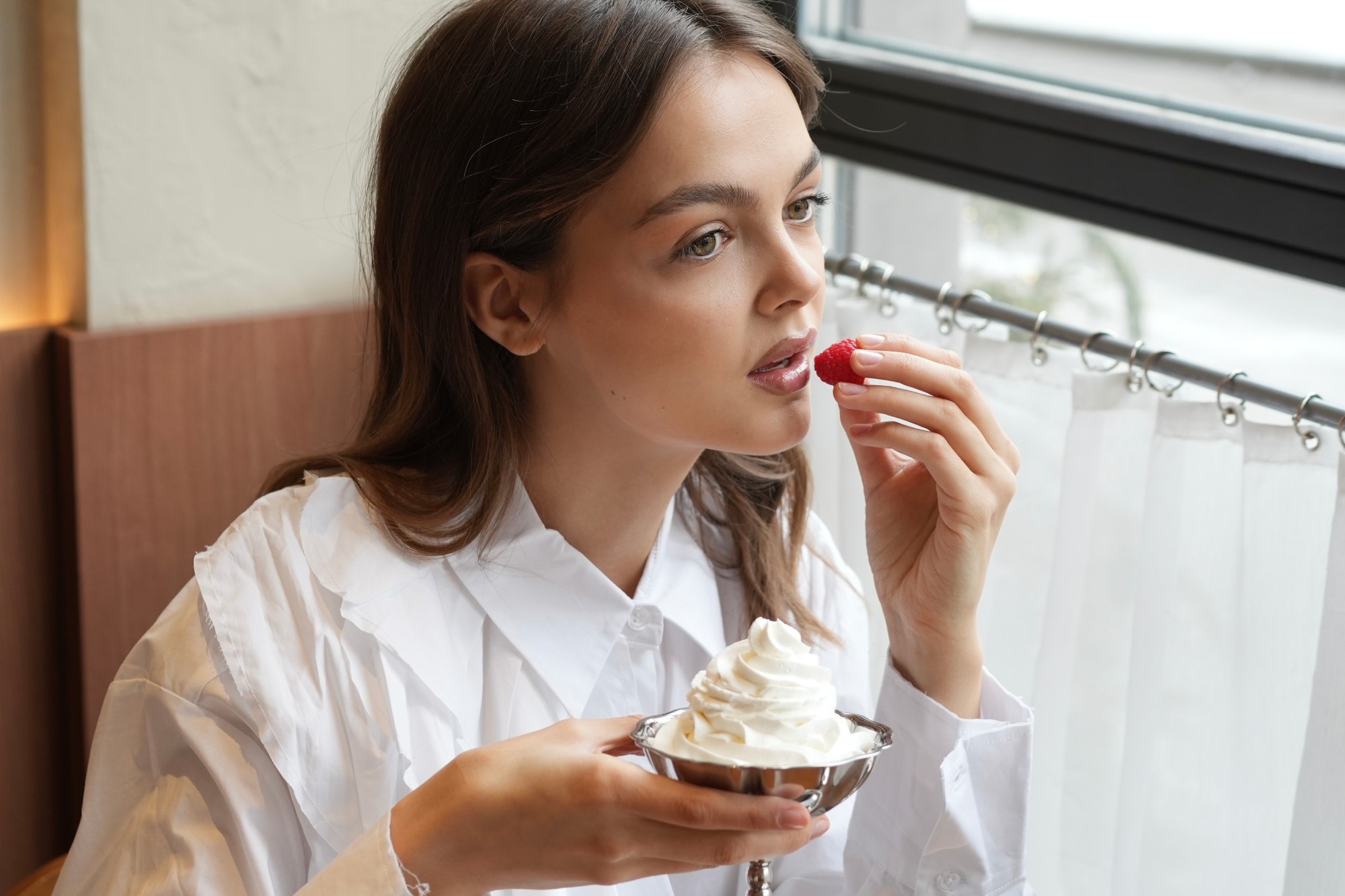 Здесь он напоминает густой пудинг — настолько насыщенный, что его удобно есть ложкой, макая в него свежую бриошь или печенье. В меню представлены два изысканных варианта: один — с банановыми сливками и теплым синнабоном, другой — с ванильными сливками и свежей малиной. Для тех, кто хочет попробовать все сразу, доступна двойная порция с обеими версиями топпингов.