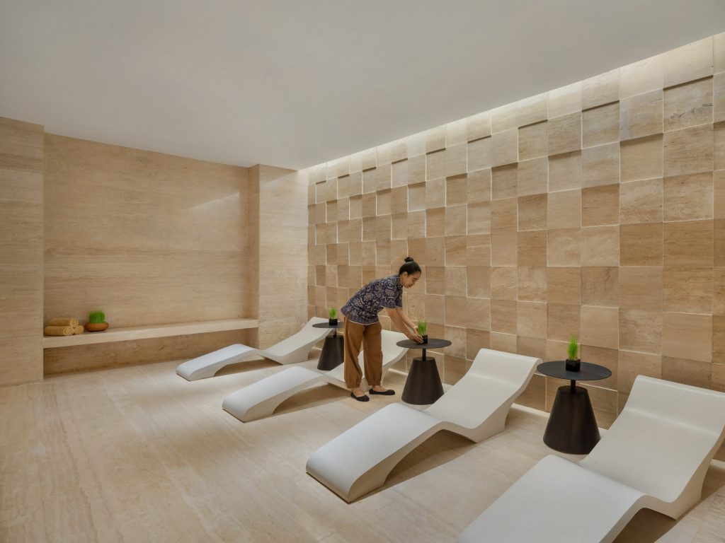 Биофильный дизайн усиливает связь с природой: зрелая тропическая зелень, натуральные материалы, панорамные виды на океан и продуманная планировка, вдохновленная ирригационной системой Subak, позволяют гостям полностью погрузиться в атмосферу острова на каждой вилле. Прогулочные тропы среди зелени создают эффект открытия и стимулируют выработку дофамина, павильоны для йоги способствуют высвобождению эндорфинов, а общественные пространства — от ресторанов до бассейна — формируют условия для живого общения, усиливая чувство связи и гармонии через выработку окситоцина.